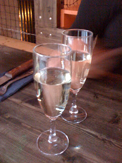 Jag älskar Cava! Vilken tur att de hade specialpris på just Cava igår då. Cava fiesta kallar de det på Wood. Jag och Malin tog in en flaska som vi delade på och det satt väldigt fint till maten. Jag beställde in en pizza med serranoskinka och olika sorters salladssorter på. Ruccola, bladspenat och något sorts skott bland annat. Efter middagen gick halva gänget vidare och tog en drink på El Corazon innan det var dags att bege sig hemåt. Vi pratade om allt ifrån mental ålder till jobbrelaterade saker. Mycket trevlig kväll.