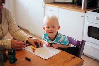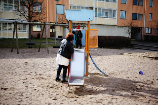 Imorse kom Isacs mormor hem till oss för att umgås med oss på vår lediga dag. Min och Isacs alltså. Vi har ätit frukost, busat, handlat roliga saker på Lidl, lekt ute på gården, ätit lunch, varit på Järnia, promenerat, tittat på vitsippor, ritat och druckit kaffe. Mysdag! Vädergudarna var dessutom på vår sida för en gångs skull. Riktigt gott ute var det när solen tittade fram.