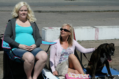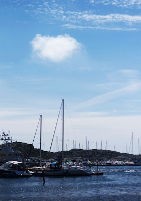 Idag jobbar Mikael. Jag har varit på utflykt med M, M och M. Vi landade på Koön, där vi satt och tittade på folk, båtar och motorcyklar. Solen sken på oss och vi gottade oss med kycklingbaguetter, mineralvatten, jordgubbar och kaffe. En perfekt lördagsutflykt. Jag smörjde mig noggrannt med solskyddsfaktor hemma och har ändå fått färg. Kanske har man som jag läst, lättare för att bli brun som gravid.