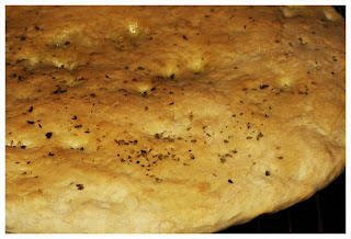 Ett slags foccaciabröd, bakat med dinkelmjöl. Nu väntar jag på min hemmagjorda pizza, yum!