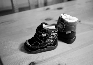 Igår var vi som sagt hos Isacs mormor och morfar. Vi började med en runda inne på byns skoaffär, där Isac blev bortskämd av sin mormor och morfar med inte mindre än två par skor som han kommer ha stor nytta av nu under höst och vinter. Det känns viktigt att hans skor är stabila och varma nu när han är ute mycket och går.