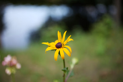 Jag tog mig ut på en liten runda för att få lite frisk luft och avkoppling. Kameran fick följa med. Underbart väder och fullt med folk ute som njöt av sommaren. En kille fiskade, ett gäng satt nere vid sjön och hade picknick, barnen spelade strandtennis. Flera människor var ute med sina hundar. Själv tog jag foton på såväl blommor som solen som glittrade i sjön.