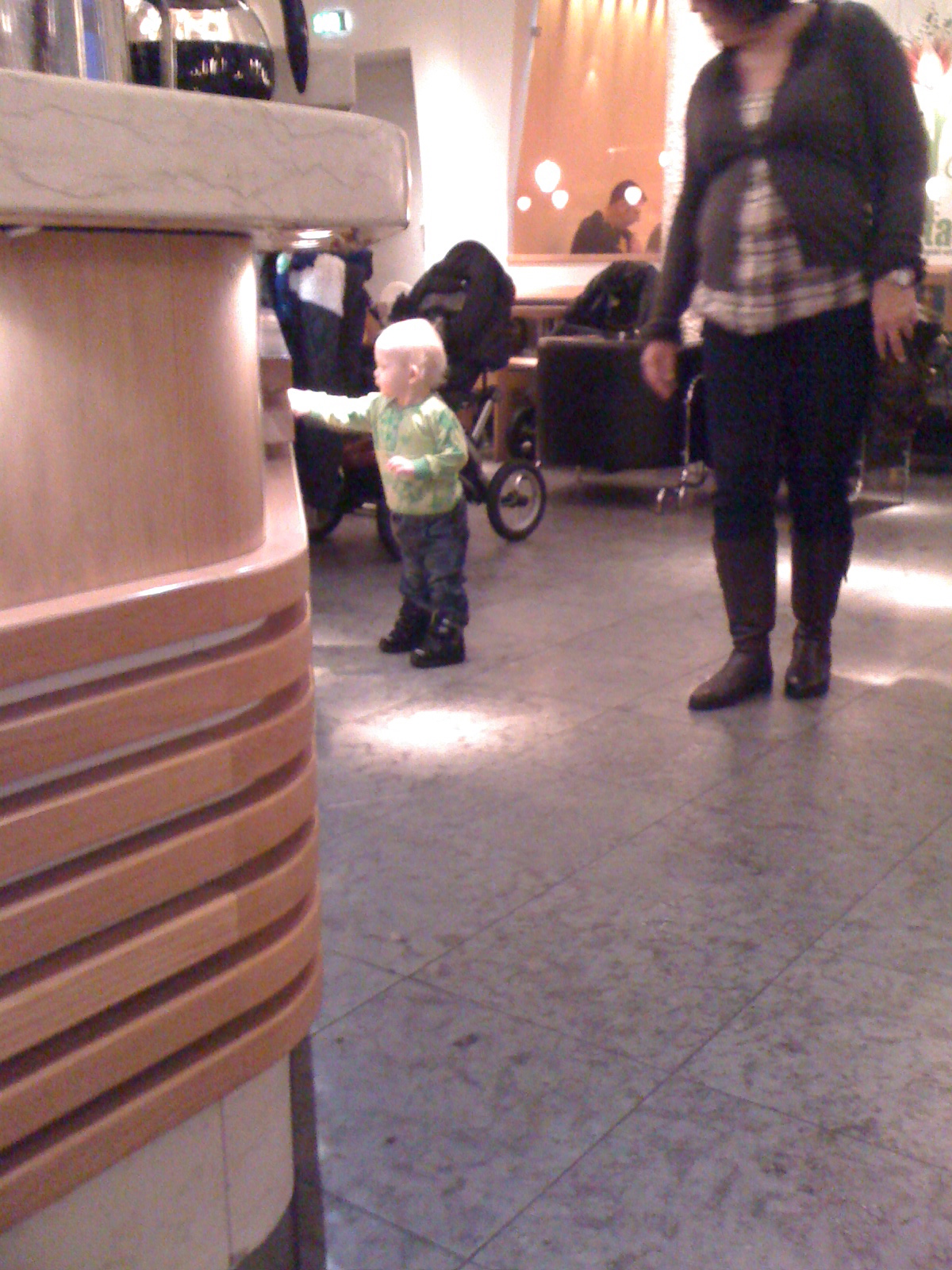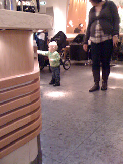 Framåt lunchtid åkte vi in till Göteborg för att äta lunch och titta i lite affärer. Isac snodde lunch från våra tallrikar som han åt med god aptit. Panini och paj med ost och skinka. Vi tittade på fina barnkläder, hittade en julgransfot åt Isacs morföräldrar på Clas Ohlson, kände på vackra kläder och tog en fika. Dagen till ära hade Condecco glögg och pepparkakor till försäljning. Mysigt. Över lag var det en mysig dag, och där vet jag att jag talar för både mig och Isac. Isac hade jätteroligt. Jag fotograferade bara med kameran på min iPhone idag så bilderna är därefter. Men bättre än inget!