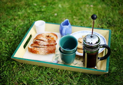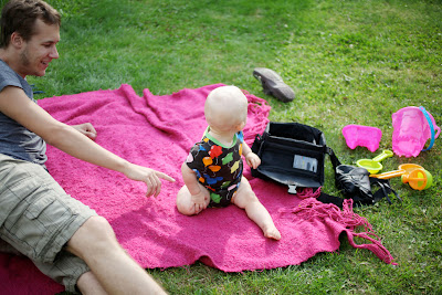 Isac hade haft det gott hos farmor och farfar, som bland annat köpt en pool till honom. Den hade han gillat mycket. Kan tänka mig att det var underbart att plaska runt i den i värmen idag. Blev själv sugen på att lägga mig i den när vi kom dit för att hämta Isac. Innan vi åkte hem med vår lille prins tog vi en fika. Vi satt på en filt på gräset, underbart mysigt. Svensk sommar när den är som bäst!