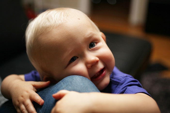 Gos med mammas knä. Antingen så är det bus och lek just nu, eller så är det mys och gos. Mycket kramig period.