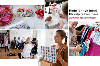 Dags för en förändring? Ta chansen och ansök om att bli säljare hos me&i. Du får utbildning i me&i:s homeparty-koncept, provision från första sålda kronan och möjlighet att styra dina egna arbetstider. Är du målmedveten och älskar kläder? Skicka in din ansökan och börja din nya karriär redan idag, www.meandi.se/nyttjobb