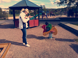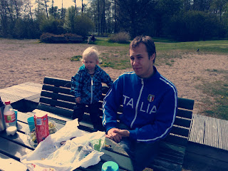 Denna soliga söndag har vi bland annat tillbringat genom att fika och leka med Louise o co. Vi möttes upp på Stora lekplatsen båda familjerna och dukade upp fika – bullar, kakor, frukt och kaffe. Gott.